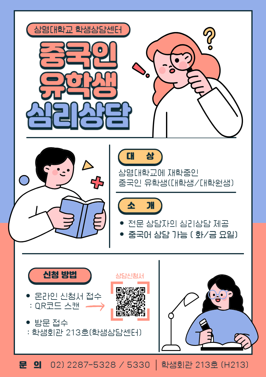 [학생상담센터] 중국 유학생 대상 중국어 심리상담 안내